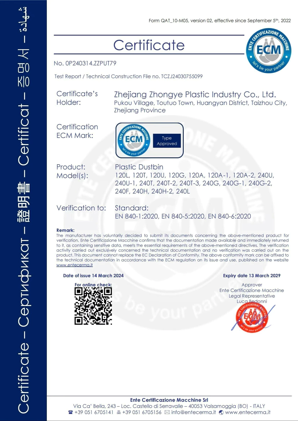 La norma EN 840, establecida por el Comité Europeo de Normalización (CEN), define los requisitos europeos para contenedores móviles de residuos, especificando criterios de diseño, durabilidad y seguridad en contenedores con ruedas utilizados en la recogida de basura. Los productos certificados bajo este estándar deben superar pruebas rigurosas que verifican su resistencia mecánica, capacidad para soportar condiciones climáticas adversas y funcionalidad operativa, garantizando así un rendimiento óptimo en entornos reales. Este estándar aplica a contenedores con capacidades de hasta 1300 litros y su cumplimiento es obligatorio para su comercialización en la Unión Europea. La certificación EN 840 asegura la fiabilidad de los productos en sistemas de gestión de residuos municipales o comerciales a largo plazo, reduciendo costes de sustitución y garantizando compatibilidad con sistemas automatizados de tratamiento. Además, confirma el alineamiento con las normativas medioambientales y de seguridad de la UE, siendo un requisito clave para acceder al mercado europeo.